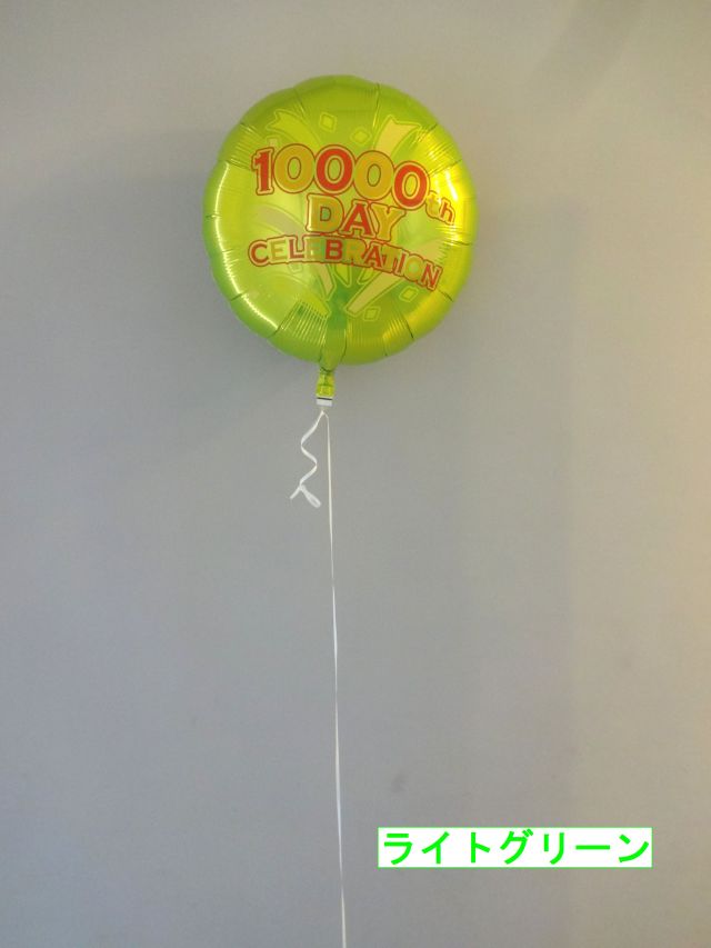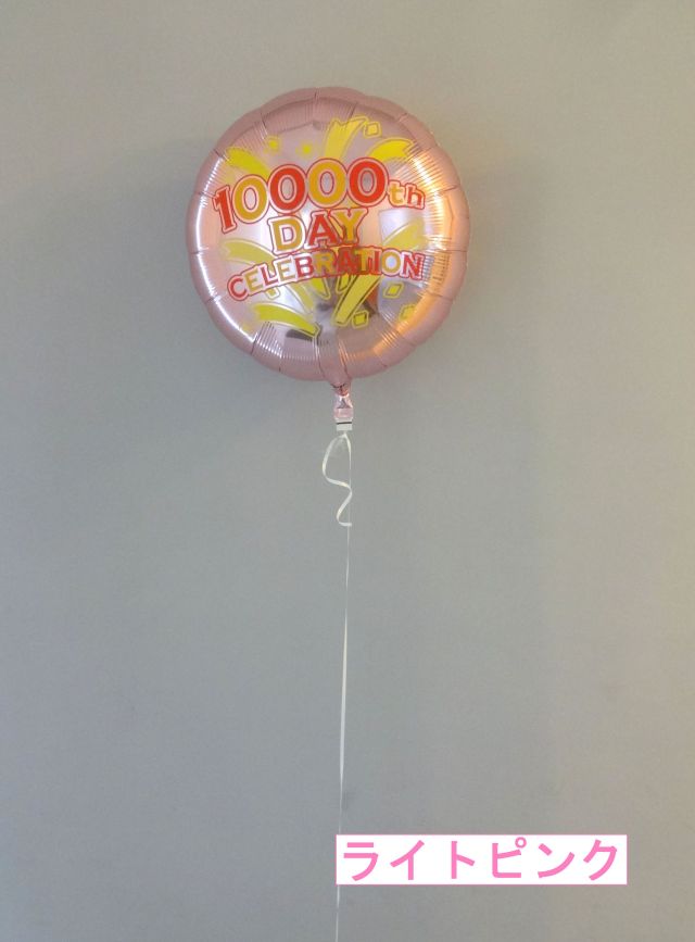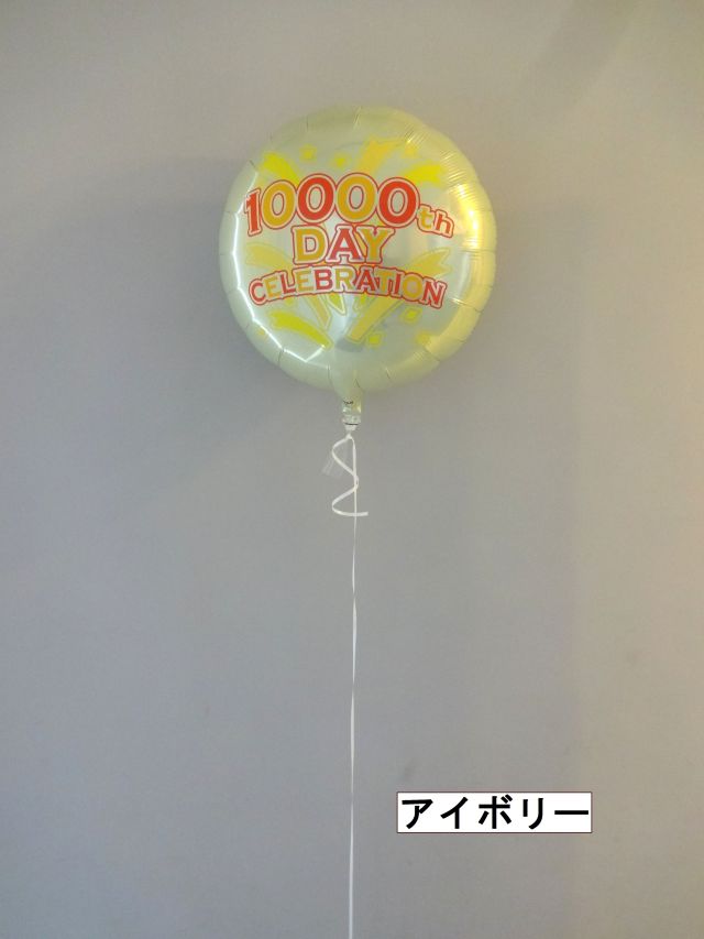 ヘリウムガスが入った「10000日記念日」のオリジナルのフィルムバルーン。全4カラーご用意しました。